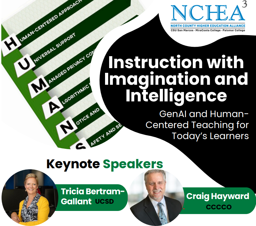 Teaching and learning has always been human centered. Join colleagues from across the San Diego region and beyond, for a day of discovery, dialogue, and collaboration while we together dive deeper into GenAI and Human-Centered Teaching for Today’s Learners.